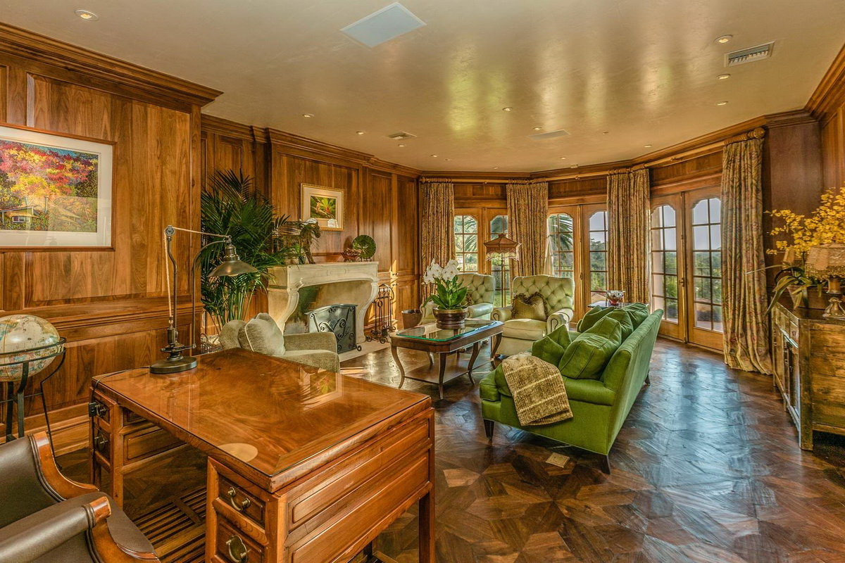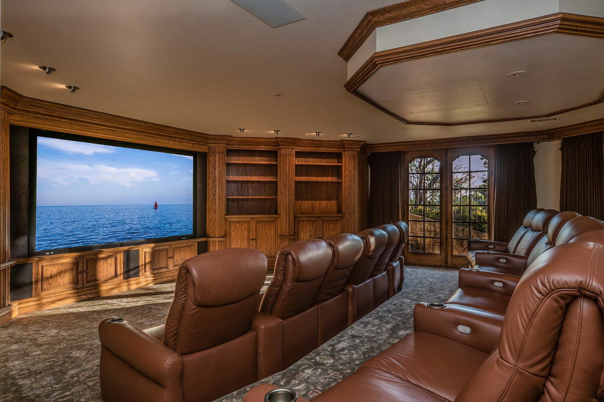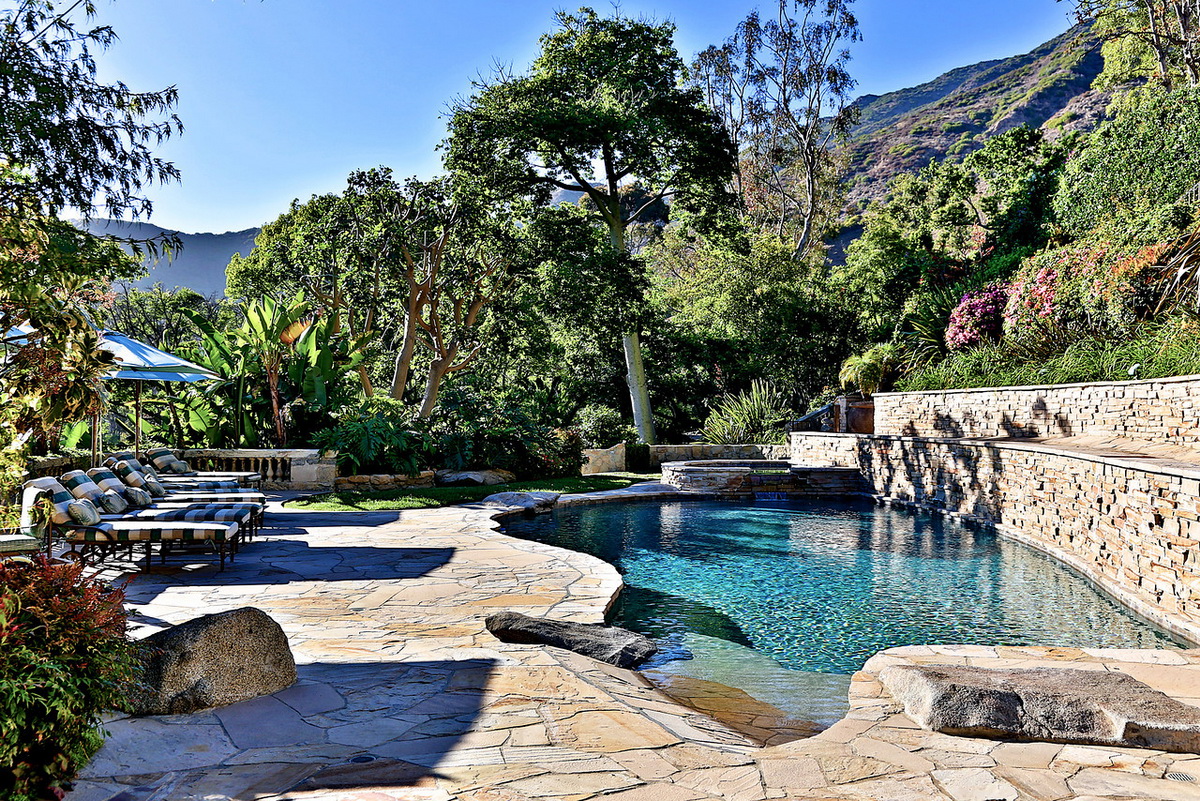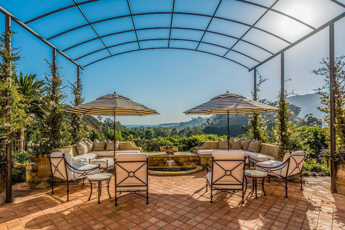 It is the only property in Malibu with close to 5 acres including a 6 stall equestrian facility and riding ring, lighted tennis court and viewing terrace, Monet lily pond, fruit orchard, waterfalls, a large manicured lawn hidden in a grotto, a resort caliber pool and bath house, 2 outdoor spas, outdoor fireplace, BBQ area, multiple French fountains, a 17th century architectural stone antiquity, rose garden, organic vegetable garden, stone terraces, and quiet walking footpaths. Out buildings include a carriage house, security outpost, a movie theater, a two story old world ballroom with a crystal chandelier, 2 elaborate guest suites with private fireplaces and courtyards, an exercise studio, staff facilities, and star gazing deck.